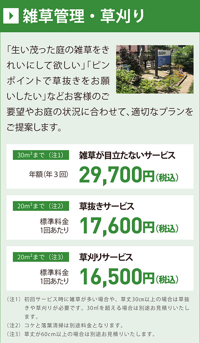 経験20年以上のスタッフによる剪定サービス 剪定・伐採にお伺いするスタッフは、ダスキンが厳しい基準で採用し、直接雇用しています。 経験実績20年以上のスタッフがお伺いし、お客様の要望に合ったお庭造りをご提供します。